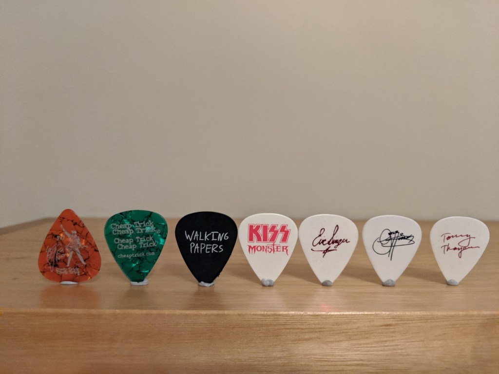 Used guitar picks from Cheap Trick, Walking Papers and KISS – all acts featured in this episode.